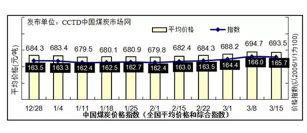 本期中國煤炭價格指數(shù)小幅回落。根據(jù)監(jiān)測數(shù)據(jù)測算,3月15日,中國煤炭價格指數(shù)(全國綜合指數(shù))為165.7點(diǎn),比上期下降0.3點(diǎn)。