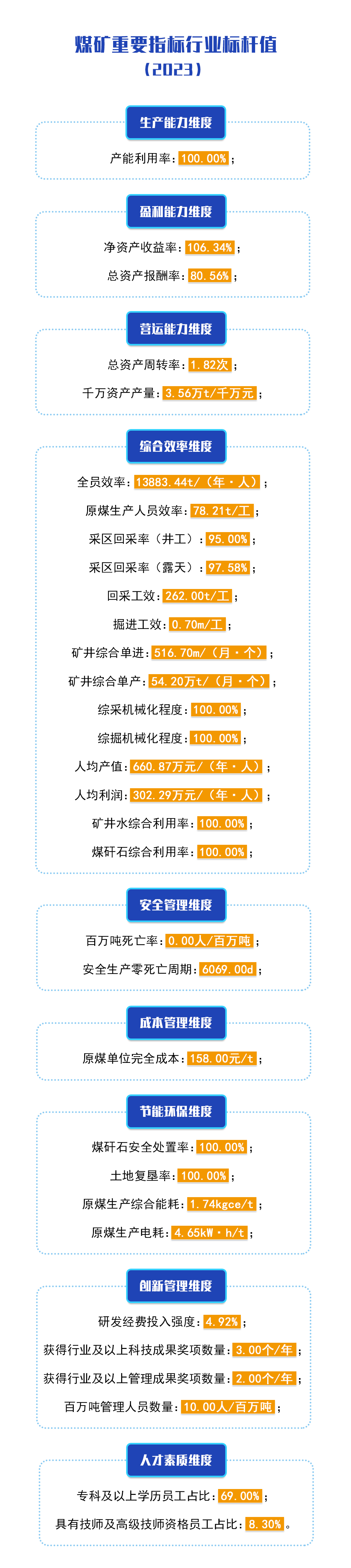 11月28日,2023煤炭行業(yè)對(duì)標(biāo)工作會(huì)議暨首屆煤炭行業(yè)標(biāo)桿煤礦礦長(zhǎng)論壇在京召開(kāi)。會(huì)上,煤炭行業(yè)標(biāo)桿中心發(fā)布煤礦重要指標(biāo)行業(yè)標(biāo)桿值,分9個(gè)維度共31項(xiàng)指標(biāo),這是自去年國(guó)內(nèi)首次公開(kāi)發(fā)布后,今年連續(xù)第二年發(fā)布。其為行業(yè)企業(yè)對(duì)標(biāo)世界一流提供衡量標(biāo)尺,既能解決對(duì)標(biāo)過(guò)程中遇到的對(duì)不全、對(duì)不上、對(duì)不準(zhǔn)和數(shù)據(jù)不可信的難題,又能明確與標(biāo)桿值的精準(zhǔn)差距,找準(zhǔn)自身長(zhǎng)短板,精準(zhǔn)開(kāi)展價(jià)值創(chuàng)造行動(dòng),有力促進(jìn)煤炭行業(yè)世界一流企業(yè)建設(shè)。